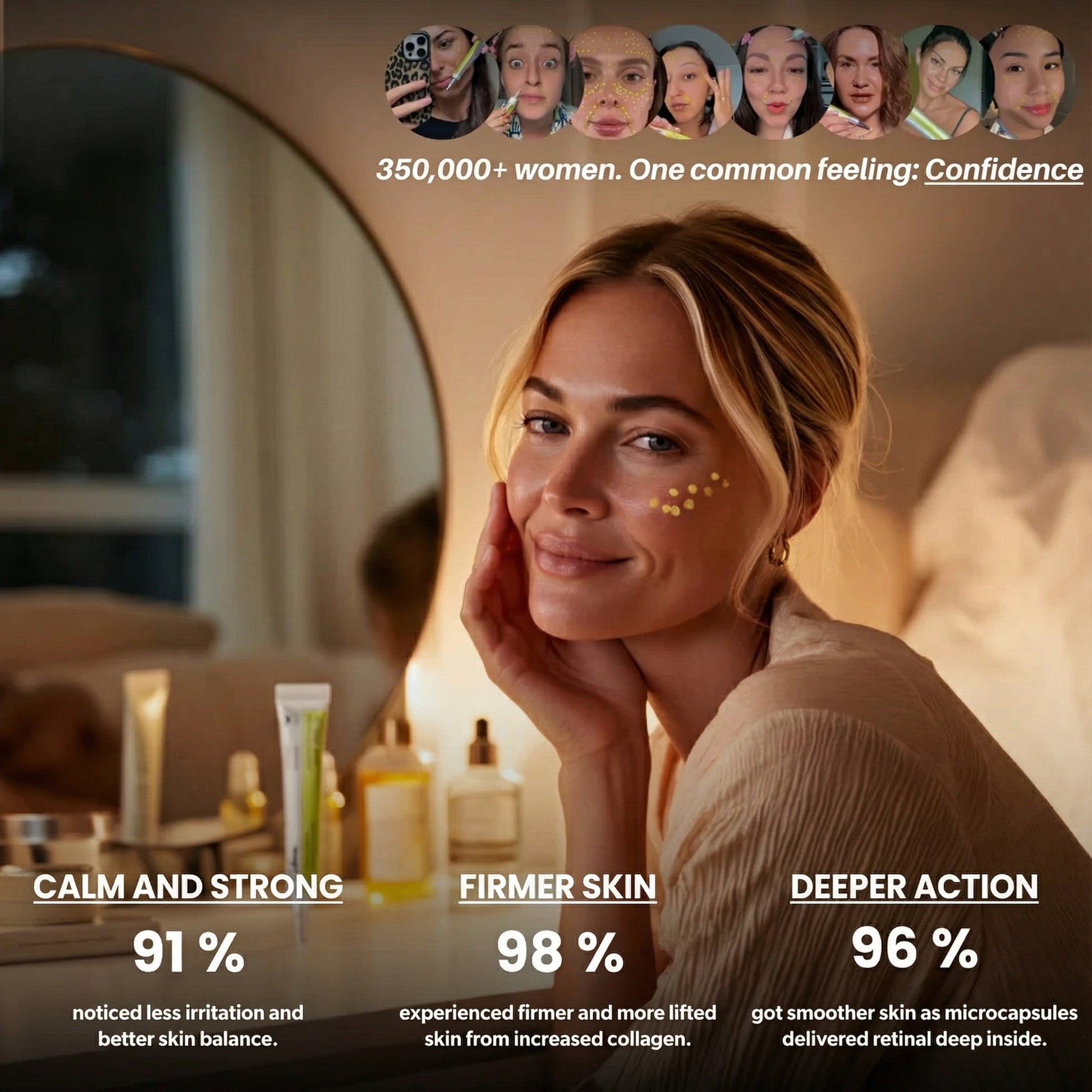 This is why we use retinal. It works closer to the active form your skin actually responds to, so your skin uses it more directly and efficiently. You get a powerful yet straightforward solution that targets fine lines, texture and early discoloration with real precision.